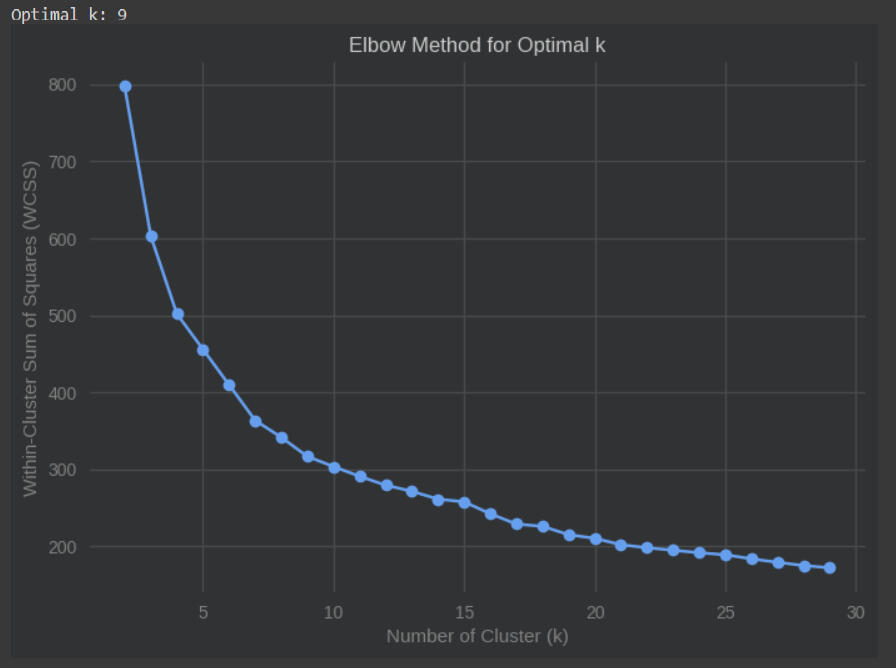 En este caso se ha obtenido que el número óptimo de segmentos según el método del codo es 9: